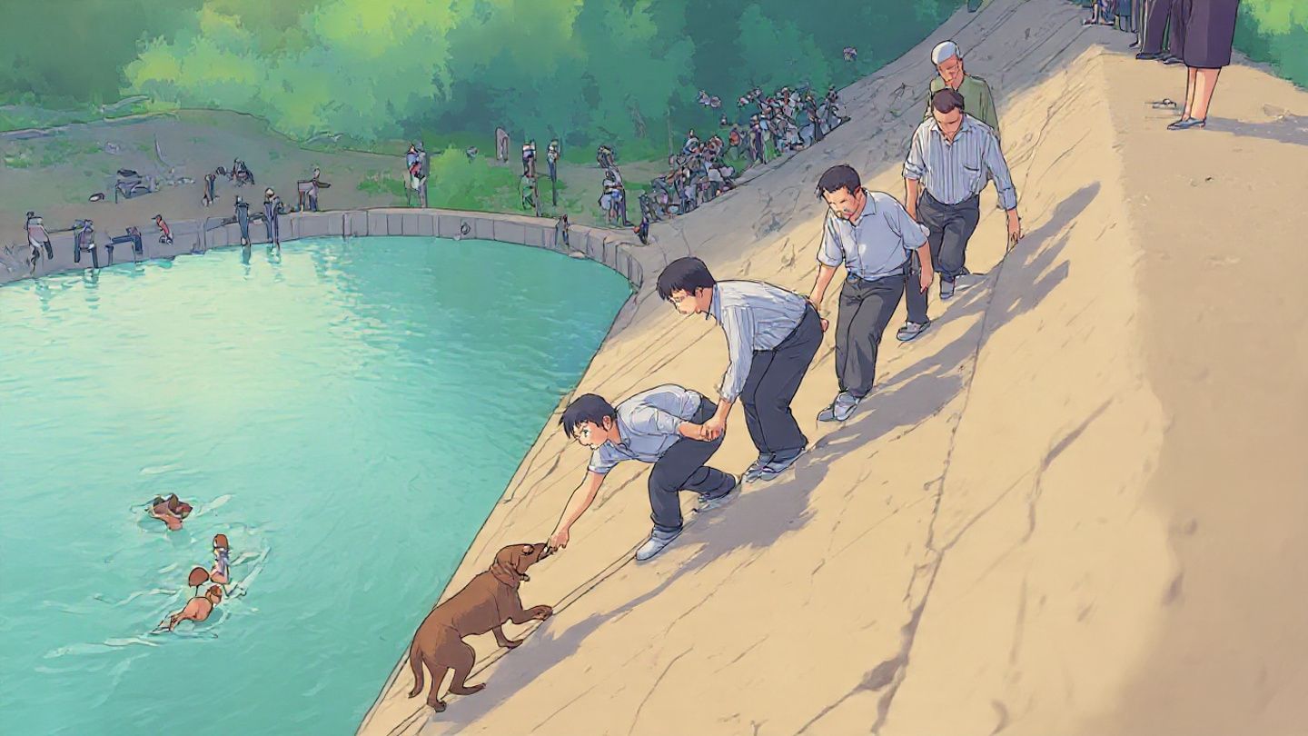 In June 2016, on the banks of the Sayran Reservoir in Almaty, Kazakhstan, a dog fell into the water. The reservoir walls were steep and slippery — the kind of smooth concrete incline that offers no grip and no mercy. The dog paddled but could not climb out. A young man nearby did not walk past. He climbed down the embankment to reach the animal. Once at the water's edge, he found himself in the same predicament: unable to get back up, the current too strong, the walls too sheer. What had begun as a single act of compassion had become a two-person emergency.